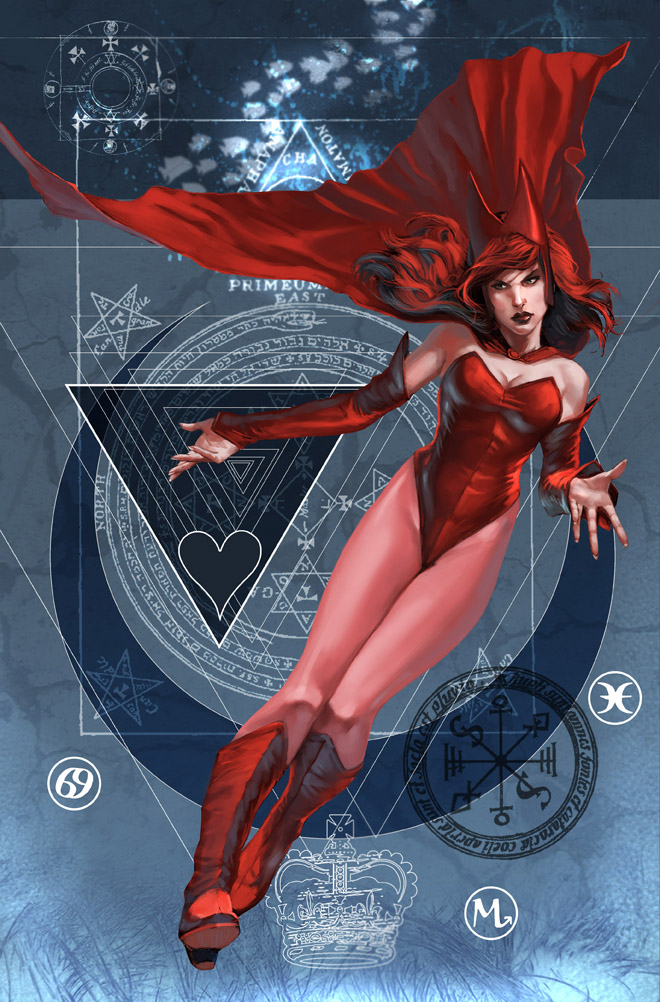 Sus comienzos fueron bastante feos, formando parte de la hermandad de malvados mutantes al principio de su historia como rivales de la Patrulla X. Así, podríamos ver en ella un reflejo de Jean Grey, pues sus poderes «mágicos» muchas veces se enfrentaban a los poderes mentales de esta primera. Pero algo no cuadraba con esa visión del personaje, así, no mucho después, Mercurio y ella abandonaban la hermandad y buscaban otro lugar donde llevar su vida. Lo encontraron en una pequeña mansión en Wundagore, de donde provenían… hasta que llegó a sus oídos que los Vengadores buscaban reclutas. Así, mandaron una carta para optar al puesto y los fundadores les escucharon y formaron parte de la tercera hornada de Vengadores (vale, la segunda solo fue el Capitán América y, brevemente, Wonder Man, así que mucha gente no la cuenta). Aquí se encontrará con uno de los personajes que más cercanos tendrá mucho tiempo: el bravucón de corazón de oro, Ojo de Halcón. Sin embargo, Wanda buscaba todas las formas posibles de demostrar su valía ante el grupo. Aunque, siendo la época que era, el subtexto acerca de una relación con el Capitán América es poderoso. Sus poderes salvaron muchas veces a los Vengadores de destinos aciagos y mientras tanto tenía que sufrir la sobreprotección de su hermano y la condescendencia de buena parte de la comunidad superheroica. Entonces, surgió la Visión, creada por Ultrón para derrotar a los Vengadores. Después de un duro inicio, Wanda empezó a pasar más tiempo con el androide. Abandonó en repetidas ocasiones a los Vengadores, pero siempre volvía porque, en el fondo, los consideraba su familia. Finalmente, después de mejorar sus poderes y que Visión se enfrente con Mercurio en más de una ocasión, el sintezoide tiene la brillante idea de proponerle matrimonio directamente a ella. Así, la unión de magia y tecnología se encuentra en esta pareja.
